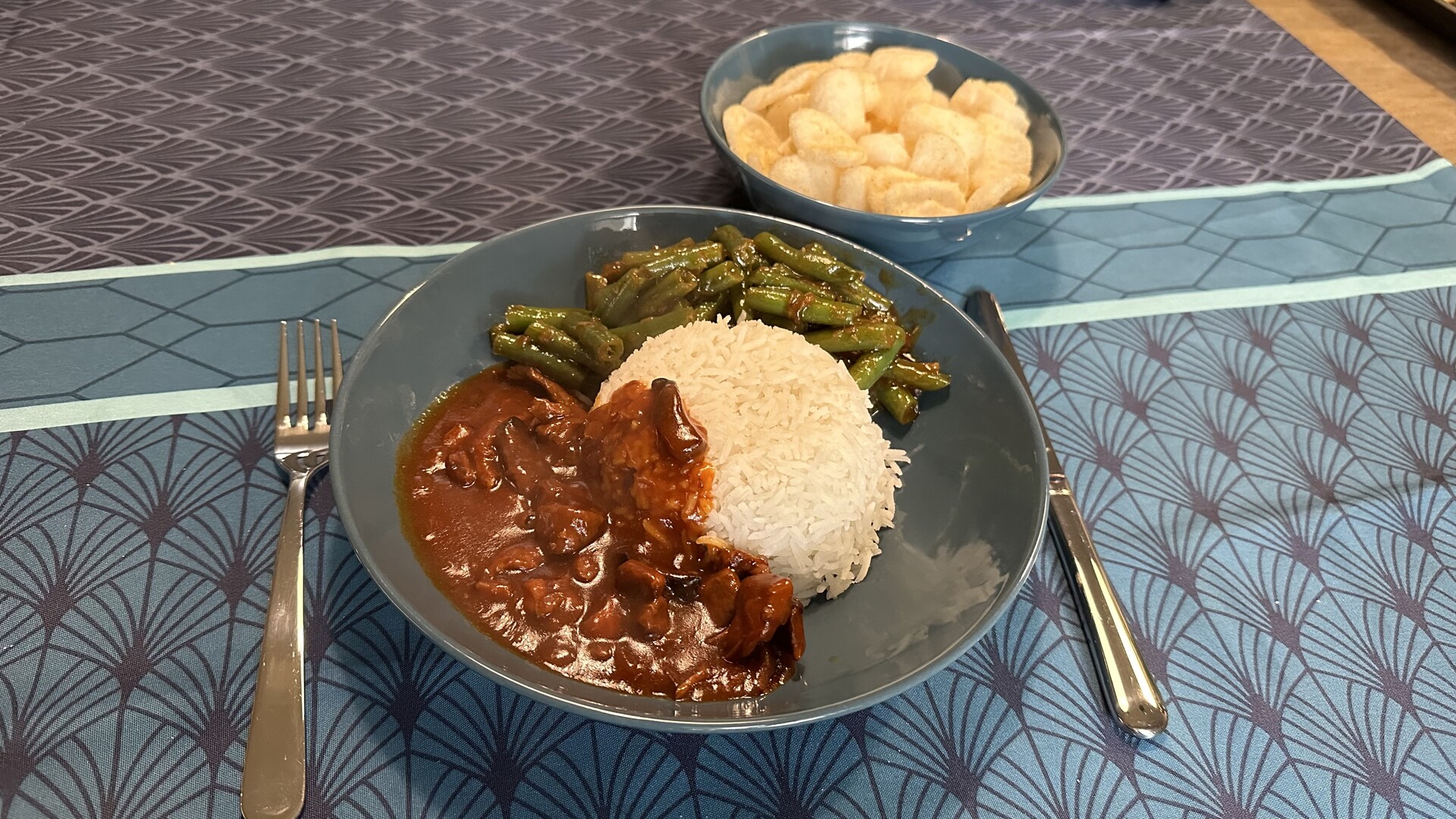 Babi Panang uit de #slowcooker met sajoer boontjes en witte rijst…