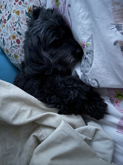 #MondaysAreHard #smoldog Loki is tucking his head for one last snooze. #dogsofmastodon