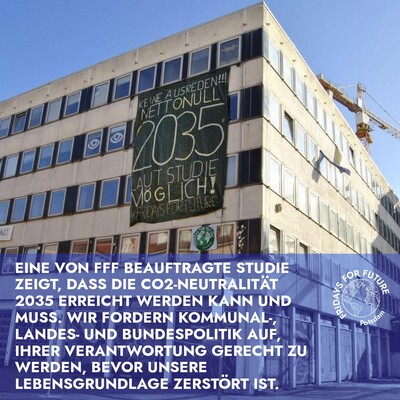 #SoGeht1Komma5 - auch wir in #Potsdam haben zur #FridaysForFuture Machbarkeitsstudie, die zeigt, dass Nettonull 2035 möglich ist, ein #banner aufgehängt. Die Studie zeigt, dass CO2-Neutralität kein naives Wunschdenken, sondern ein erreichbares und dringliches Ziel ist.