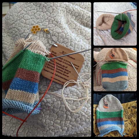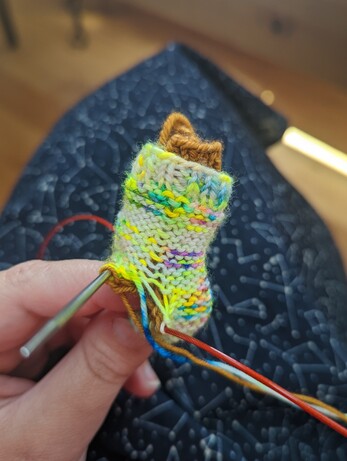 Trying a new technique: knitting two socks at a time, one inside the other. I was only willing to commit to tiny socks, though.