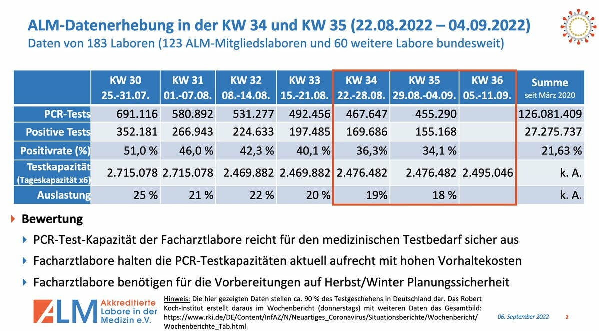 Für ein weiteres Auslaufen der #Sommerwelle sprechen auch die Test-Zahlen, die der Laborverband @ALMevTeam heute veröffentlicht hat. Wichtig ist hierbei vor allem, dass der Anteil der positiven Tests von 40,1% vor 2 Wochen auf nun 34,1% gesunken ist. (8/x)
