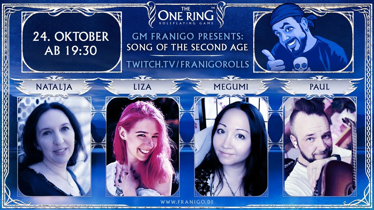 Morgen geht es nach Mittelerde! Wir spielen #SongOfTheSecondAge mit dieser wunderen Gruppe: @schriftart@twitter.com @TheLizaGrimm@twitter.com @megusagi_art@twitter.com & @MeisterdiebTV@twitter.com!