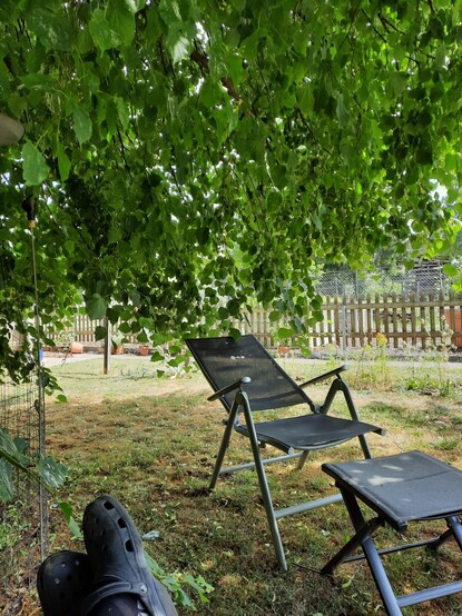 Unter der Linde dem Gezwitscher der Vögel lauschen.