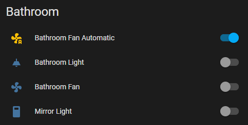 A little @homeassistant win from the weekend. Adding a couple of #Shelly and #Sonoff WiFi switches to the bathroom lights so I can inhibit the noisy extractor fan overnight, and set a timer to stop the kids leaving the lights on all night.