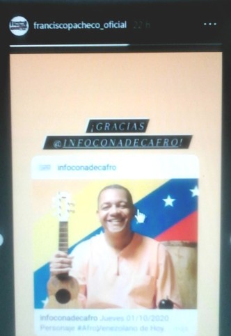Muy honrados se siente la gran familia @conadecafro, su pdta. Norma Romero, Directiva, las y los trabajadores por el agradecimiento publicado en su historia de instagram del maestro Francisco Pacheco Ysupueblo al leer la nota informativa que le hiciéramos con motivo del Día Intern. de la Música.