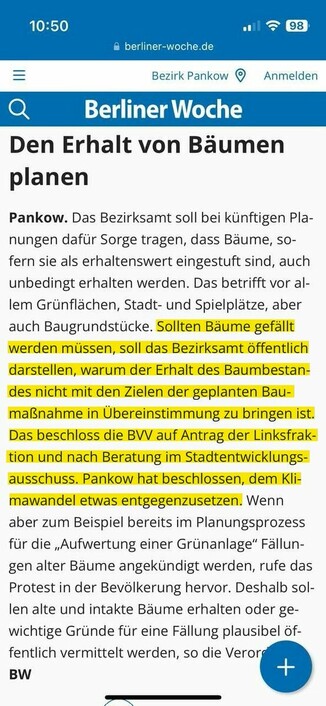 Nach Beratung im Ausschuss #Stadtentwicklung verabschiedete die #BVVPankow unseren Antrag, dass Bäume bei Planvorhaben des @BA_Pankow zukünftig berücksichtigt werden sollen. Müssen sie gefällt werden, soll dargelegt werden warum! Link zum Antrag: https://gleft.de/53v