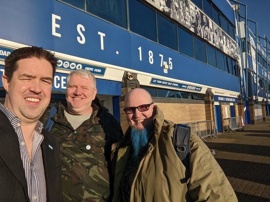 Great to present alongside @Jeffbluebeard@twitter.com and Jamesy at the @bhamcommunity@twitter.com nurses conference at @BCFC@twitter.com's St Andrew's stadium today. And the sun was out (hence the squinting!). #startWithPeople