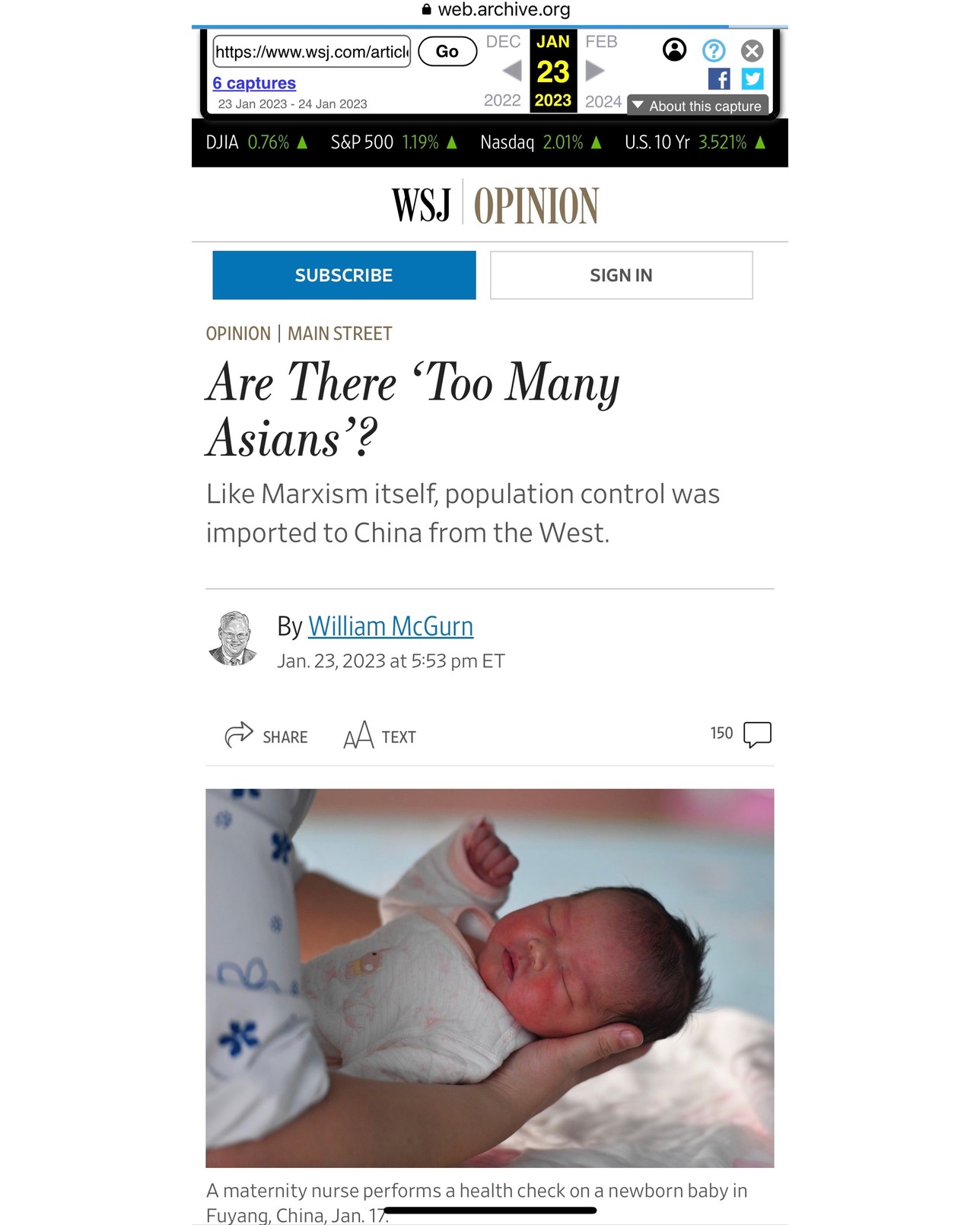 Two mass shootings in three days involving the Asian community and The Wall Street Journal ran this photo of an Asian baby with this headline.