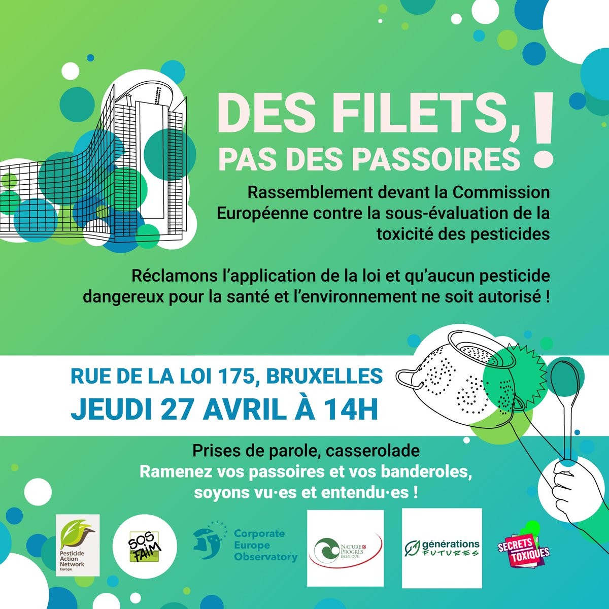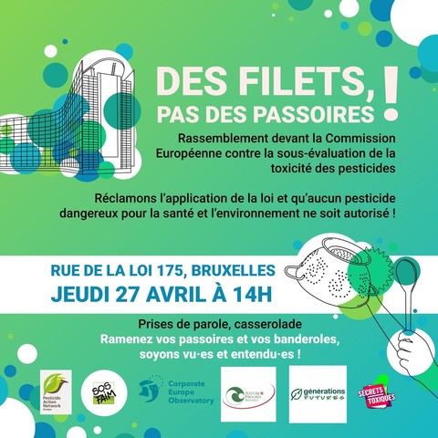 📢 Concert de casseroles et passoires devant la Commission européenne pour dire stop à la sous-évaluation de la toxicité des pesticides !