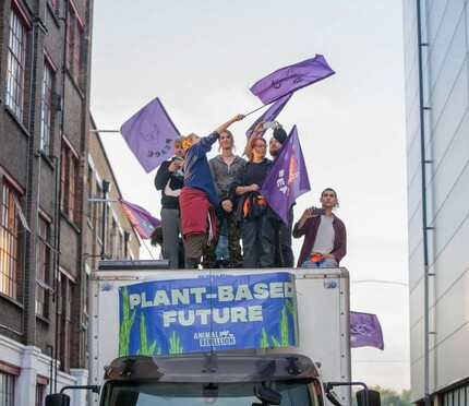 👉 Una di queste è stata programmata da gruppo di 9 ribelli a Londra, il quale è riuscito a irrompere sulla strada che porta al Parlamento bloccando il bivio e versando sulla facciata una vernice bianca che simboleggia il latte animale, con una richiesta specifica: avviare un dialogo con la nuova prima ministra Liz Truss.