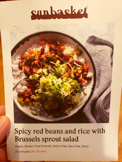 Tonight's #Sunbasket dinner: Spicy red beans and rice with Brussels sprout salad.