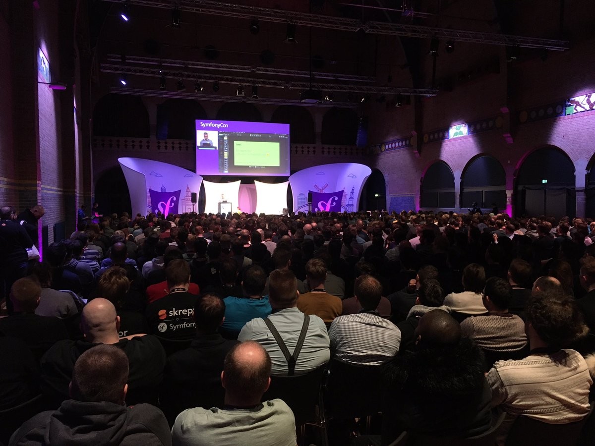 🔥 @fabpot@twitter.activitypub.actor just tagged #Symfony5 in front of 2 (two!) crowded rooms at #SymfonyCon!
