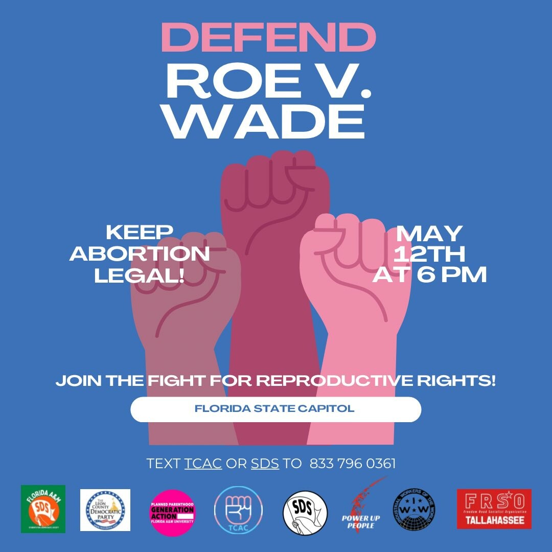 Make sure you join @TallySDS@twitter.com, @tallycac@twitter.com, @TallahasseeIWW@twitter.com, @FRSO_Tally@twitter.com, @FAMUGenAction@twitter.com, @famusds@twitter.com, @Power_up_people@twitter.com, and @leondems@twitter.com TOMORROW, 6pm, at the FL Capitol in support of Roe V Wade!