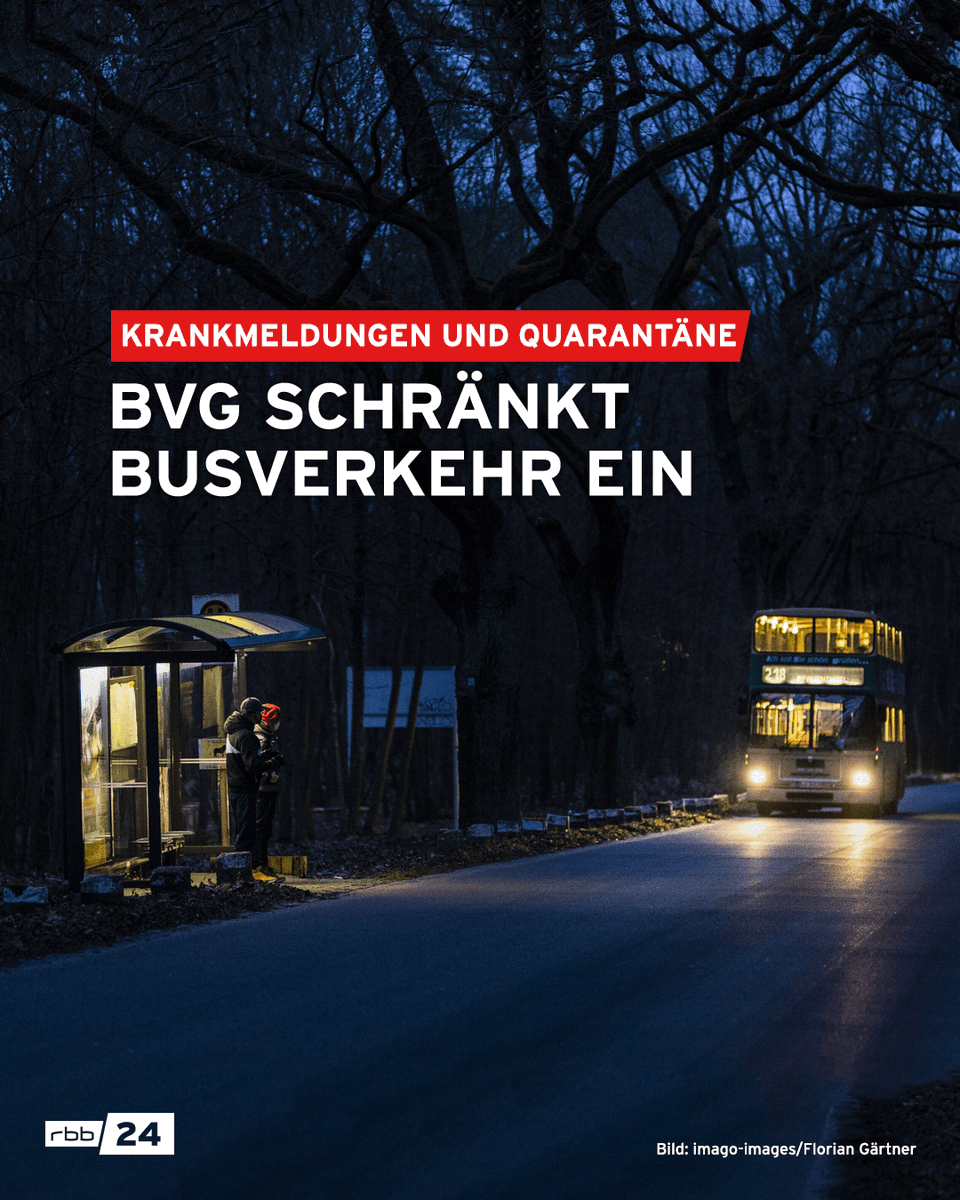 Weil sich immer mehr Beschäftigte krank melden oder in #Quarantäne sind, wird die #BVG ab dem 19. Januar bei einigen Buslinien die #Taktung ausdünnen. Straßenbahn und U-Bahn sind zunächst nicht von den Kürzungen betroffen. #Omikron https://rbburl.de/bvgtaktung