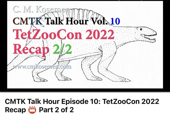 Be sure to check out episode 10 of the CMTK Talk Hour, my podcast with @cmkosemen, in which we talk about day 2 of #tetzoocon 2022. In case you‘re wondering, the animal in the thumbnail is not a misshapen Dimetrodon but something entirely different: https://youtu.be/9YQ3EvIcu8A