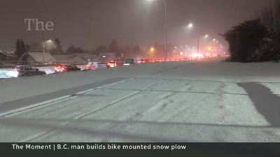 A B.C. man’s homemade bike-mounted snow plow comes in handy after this week’s storm. #TheMoment