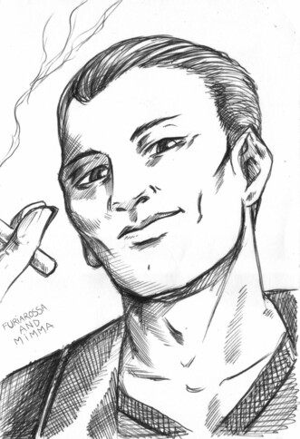 He's smoking a cigarette and judging you. A ballpoint pen sketch of Richard Maverick, criminal boss.