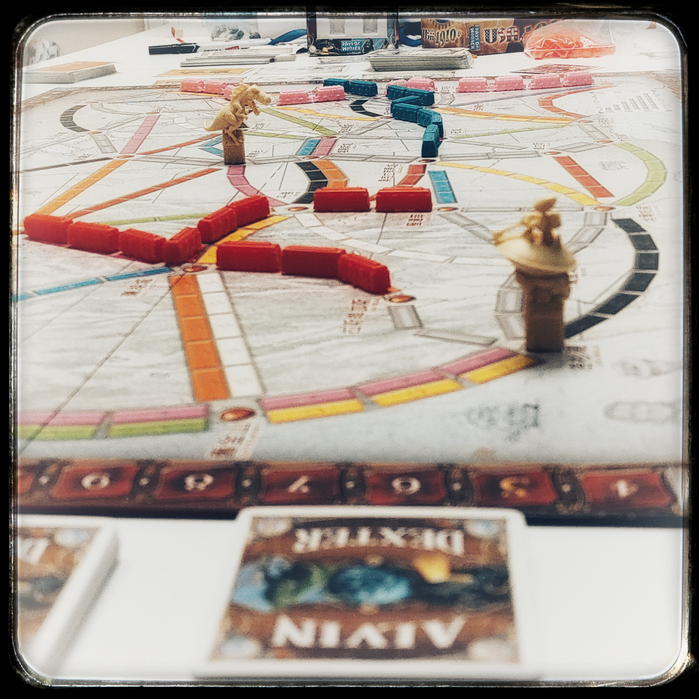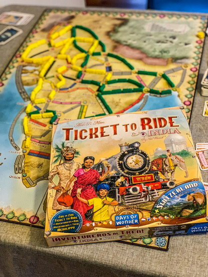 Hard-fought battle with my wife in #TicketToRide India. Bonus Mandalas made the difference with her winning by just 16 points. #boardgames