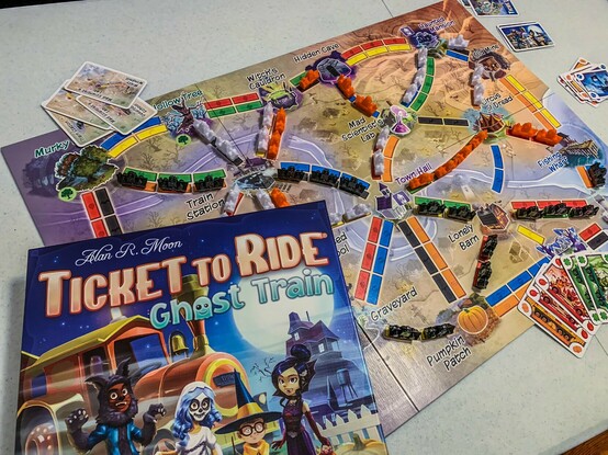 #Halloween is over, but new #TicketToRide Ghost Train is still a fun play. This is a reinterpretation of their First Journey version designed for kids.