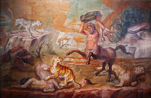 🪷 29 July is #TigerDay #InternationalTigerDay This Mosaic of a centaur rescuing his mate from a tiger adorned Hadrian's Villa. It's a metaphor for the true-life incident when #Hadrian and #Antinous charged a lion in Egypt & the Emperor saved his life. https://antinousstars.blogspot.com/2023/07/centaur-mosaic-at-hadrians-villa-offers.html 🪷