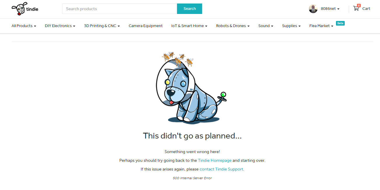 Did #Tindie get a new "500 Internal Server Error" page or do they normally show this one when (trying to) update a product option?