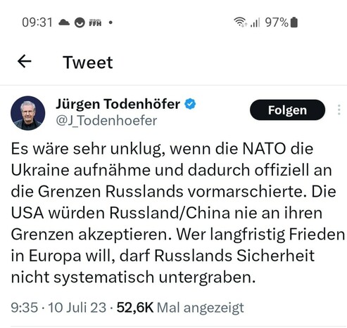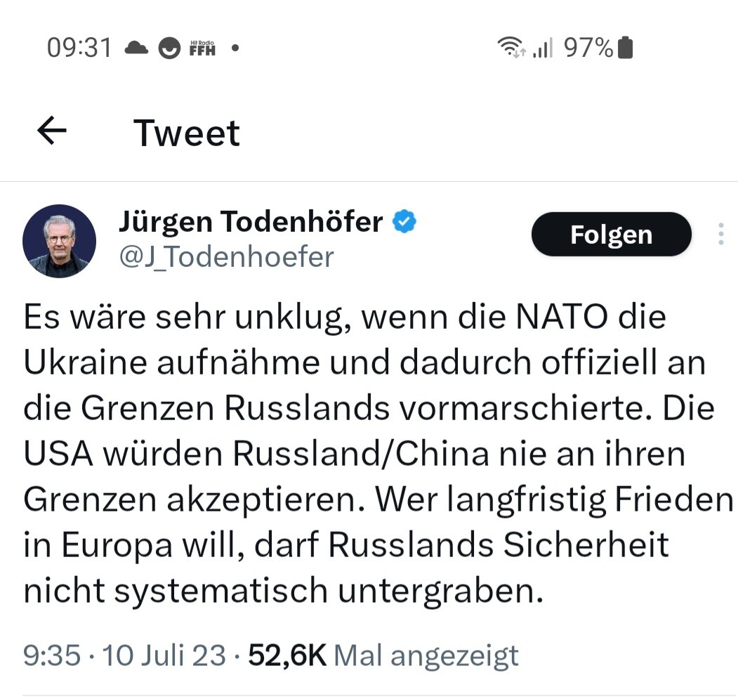 Man muss sich allmählich fragen ob #todenhoefer die Zusammenhänge in der #Ukraine kapiert, die kritische #linke hat den #Ukrainekrieg verstanden
