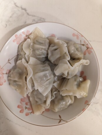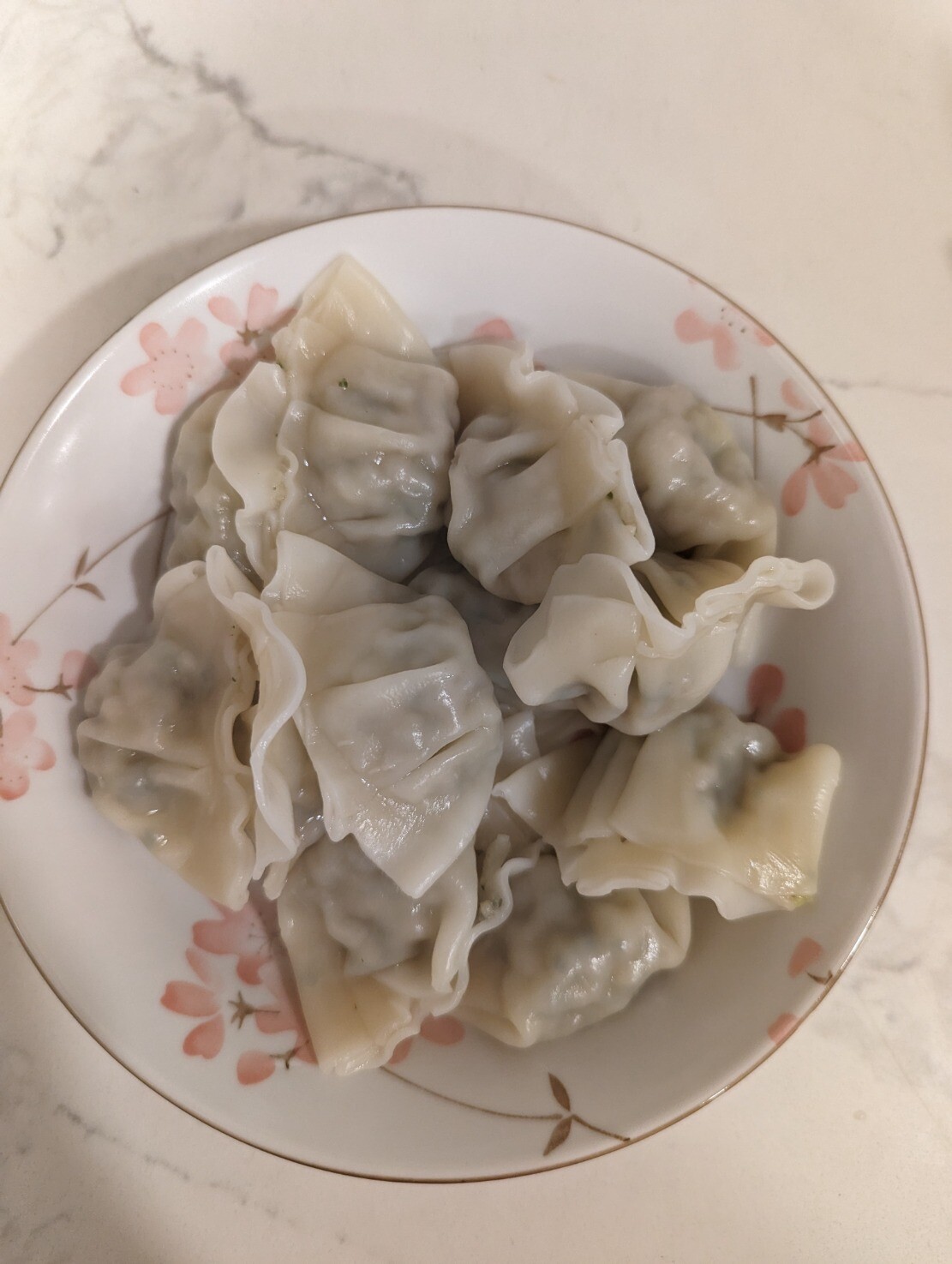 煮熟后:颜色倒确实是馄饨的颜色但是这个形状...真的不是水饺吗?