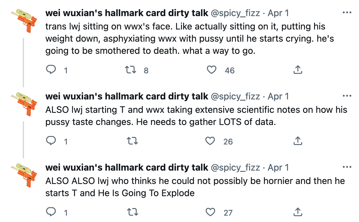 By the way, this person has lots of #Wangxian tweets, too. Like this one! #TransLanWangji
