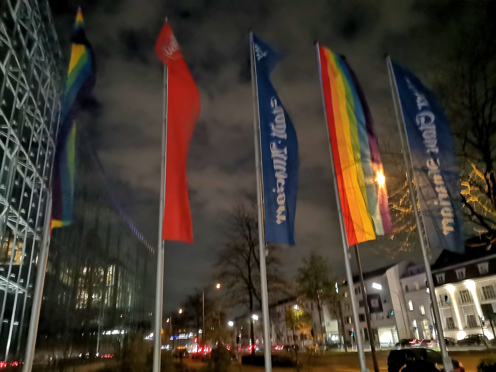 Mein Arbeitgeber hat heute bereits hรผbsch beflaggt. ๐๐ #TransgenderAwarenessMonth #IntersexDayofRemembrance