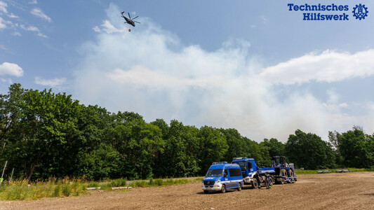 Rund 103 #THW-Kräfte sind seit Freitag bei einem Waldbrand bei #Treuenbrietzen im Einsatz. Hier unterstützen sie beispielsweise die Feuerwehr mit der Führung des Bereitstellungsraumes, der Herrichtung der Tiefbrunnen und der Sicherung von Zuwegen.