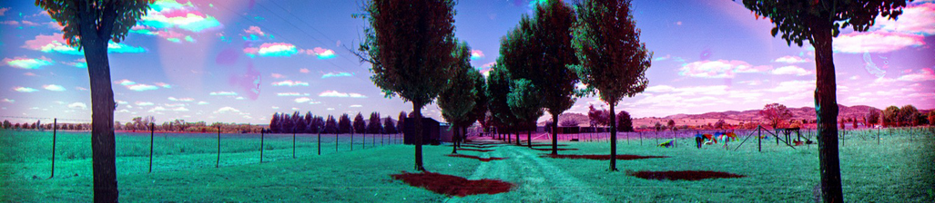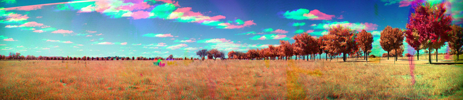 Took the Gameboy out this morning to make some trichromes, but I took out the Vortoscope as well. The first image is a regular trichrome of a tree. The second is the same tree, but with an infrared image. Yes, it's an aerochrome vortograph. π