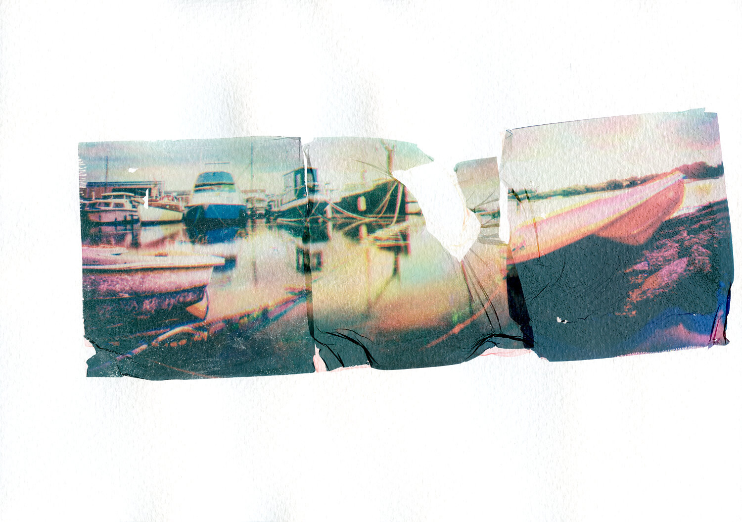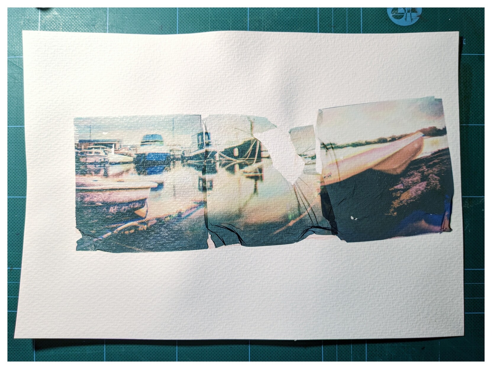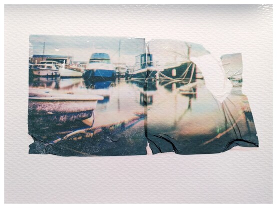 Back trying some Polaroid emulsion lifts. This is part way through a triptych Trichrome. The middle emulsion broke... Still to try theast peice. Time for dinner π¬