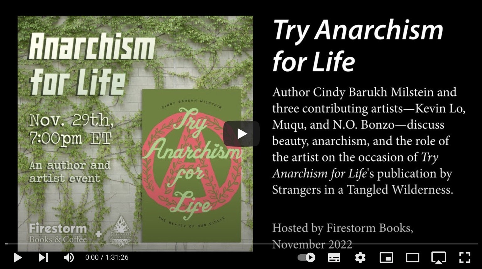 For those who missed @firestormcoop’s lovely offering of (cyber)space for a celebration of my new book, Try Anarchism for Life (@tangled_wilderness), here’s the video for your leisurely viewing: