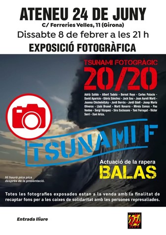 📸 Aquest 8 febrer s'inaugurarà a l'@Ateneu24dejuny@twitter.com Girona l'Exposició 'Tsunami Fotogràfic'. Una mostra solidària amb 20 imatges de 20 fotògrafs/es sobre les darreres mobilitzacions de @tsunami_dem@twitter.com on la finalitat serà recaptar fons x les caixes de solidaritat. #TsunamiFotogràfic
