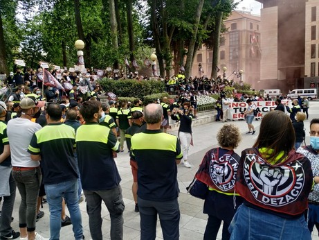 Der 236 Tage dauernde Streik in der baskischen Röhrenfabrik Tubacex, der auch erfolgreich Angriffe der cops abgewehrt hat, ist seit heute morgen beendet. Nachbar_innen und Genossinnen_en begrüẞen die erste Schicht mit Pyros und Parolen