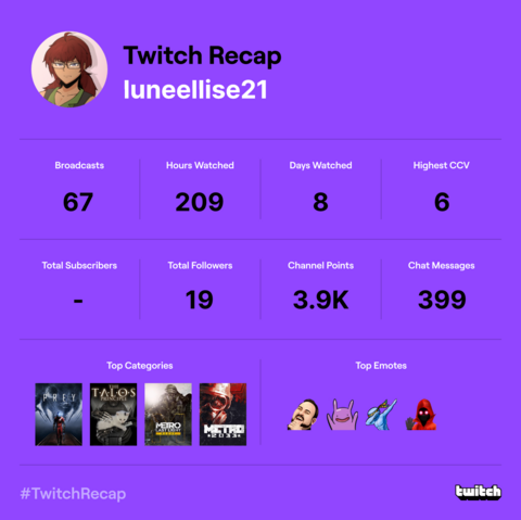 #TwitchRecap is out for 2022! Do you watch gamers on Twitch or YouTube? Looking at my numbers, I was barely online at all in 2022, but am hoping to change that in 2023. More streams of No Man's Sky, Stray, Death Stranding, Minecraft, Jackbox Games, Fortnite, Rust, GTA V, and whatevever else is enjoyable to play with others or while having friends and randoms backseat game while I try to game poorly.