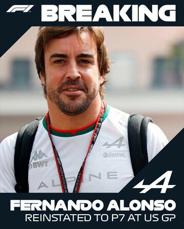 Fernando Alonso's post-race penalty at the #USGP has been rescinded, and he has been restored to P7