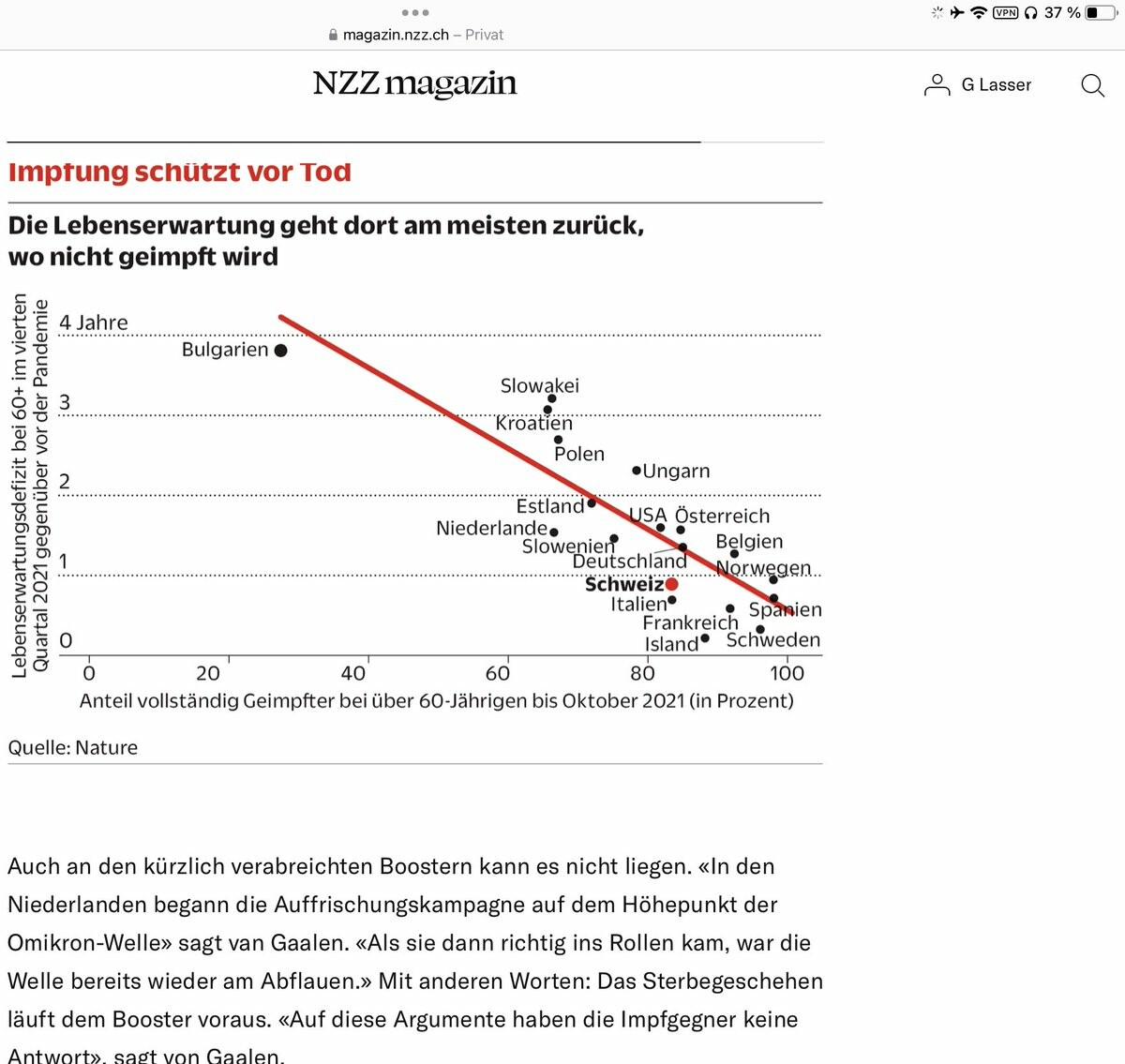 Im Dezember lag die Übersterblichkeit in Deutschland bei 37%.