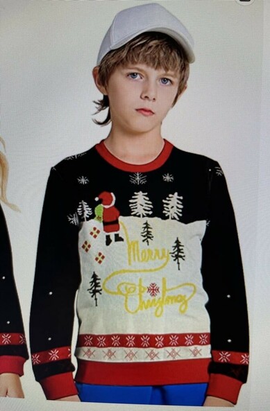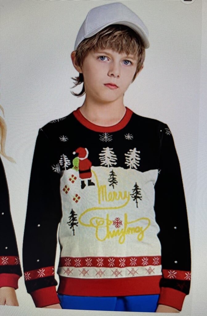 Z saw this Christmas sweater and wanted it but I said no and pointed out the model was clearly sad because he got in trouble at school for wearing it. 😏
