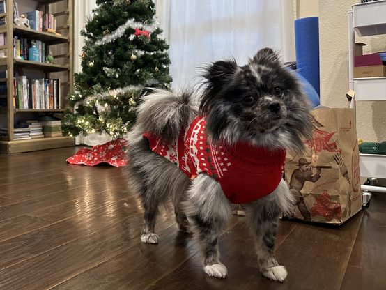 #dogsofmastodon #christmas #titanpom #UglySweater