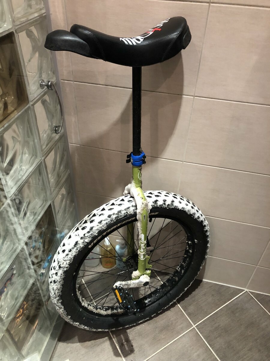 Also it is easier to bring a unicycle into the shower and shower it down after a ride #UnicyclesArePractical