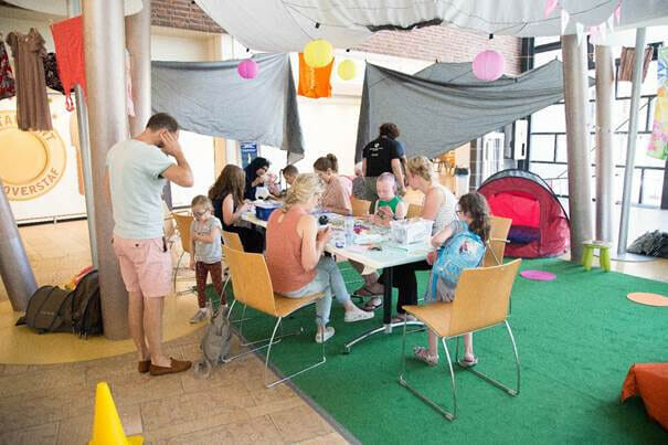 Het is al weer de 7de keer dat we in de hal van het Wilhemina Kinderziekenhuis in Utrecht in de zomervakantie een heuse camping opbouwen. Omdat sommige kinderen in de zomervakantie in het ziekenhuis liggen en dus niet op vakantie kunnen brengen wij de camping naar het ziekenhuis! Met elke dag leuke activiteiten, zoals knutselen, kastelen bouwen of smurfensnot ma