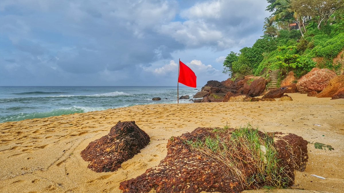 Flags raised, warning don't venture into swimming...Once rains are over, this beach, another shallow one, is so suitable for swimming #Varkala #Kerala