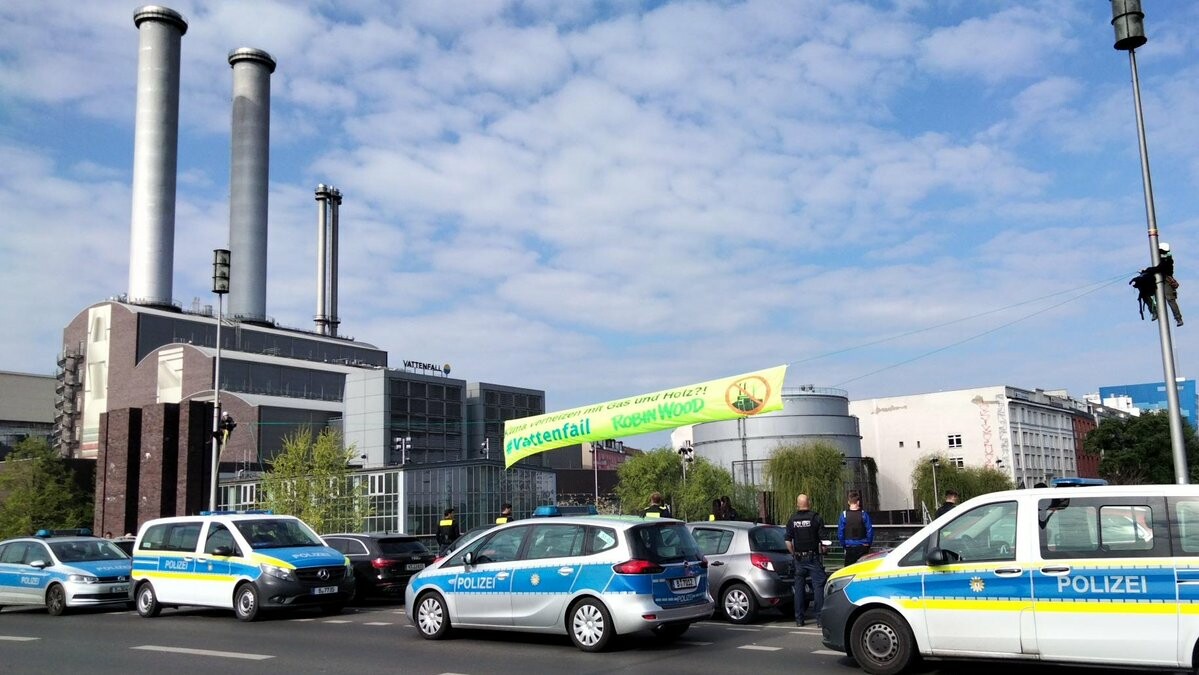 Klima verheizen mit Gas und Holz? #Vattenfail! Zur heutigen #Vattenfall Hauptversammlung protestieren ROBIN WOOD Aktivist*innen vor dem Heizkraftwerk Mitte in Berlin. https://robinwood.de/pressemitteilungen/zur-vattenfall-hauptversammlung-klimaprotest-vor-heizkraftwerk-berlin-mitte @Umwelthilfe@twitter.com @NABU_de@twitter.com @Kohleausstieg_B@twitter.com @BBK_2010@twitter.com