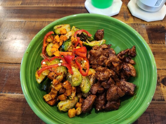 Today I made BBQ seitan with roasted root vegetables and brussels sprouts. #vegan
