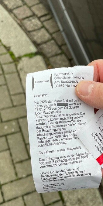 Den Audi vor der Bordsteinabsenkung wollte der #Verkehrsaußendienst der Landeshauptstadt @hannover@twitter.com abschleppen lassen!