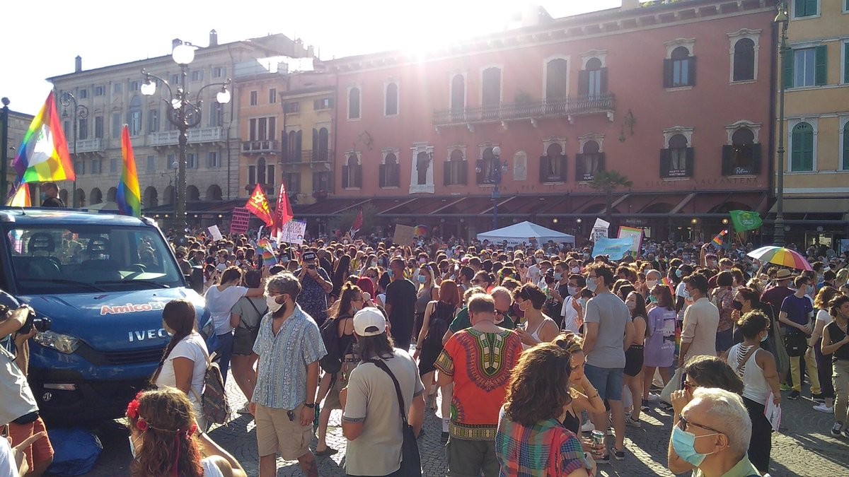 Si sta svolgendo in Piazza Bra il #VeronaPride la manifestazione, promossa da Comitato Verona Pride 2021, contro l'omo-bi-transfobia e in favore dell'uguaglianza tra i cittadini, indipendentemente dal genere e orientamento sessuale.