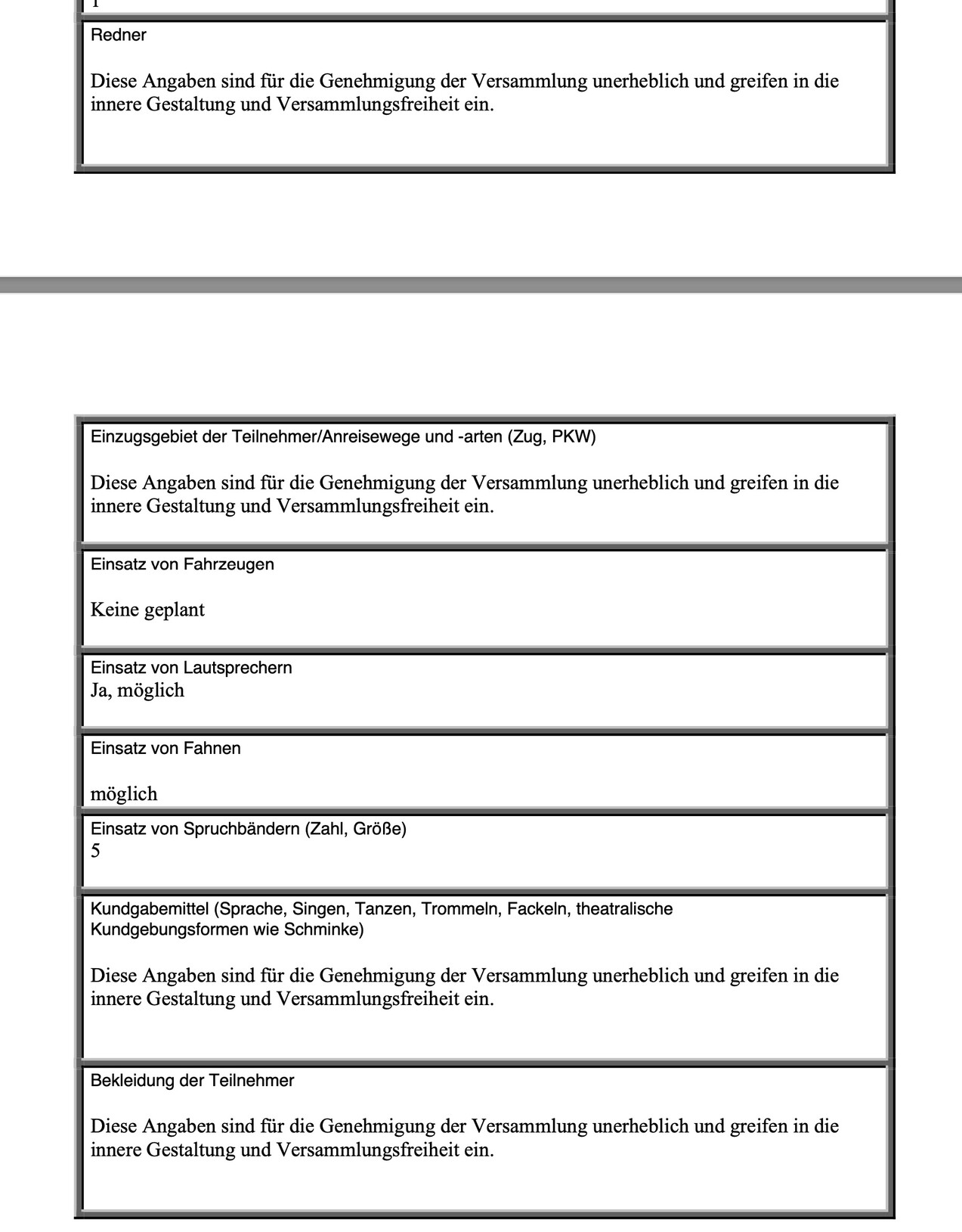 Beim Landkreis Breisgau-Hochschwarzwald hat man ganz eigene Vorstellung von den Daten, die man angeben soll, wenn man eine Versammlung anmeldet.