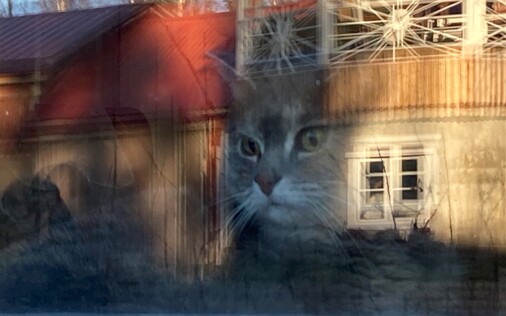 Tänään #Vesanto tuulee lujaa, Niinivesi vaahtoaa. Naapurin Viisu valvoo pihapiiriään kotituvan lämmössä.