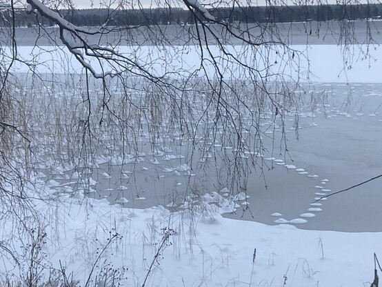 Niinivesi jäätyy vasta nyt. Ketun taival on tarttunut rantajäähän. #Vesanto